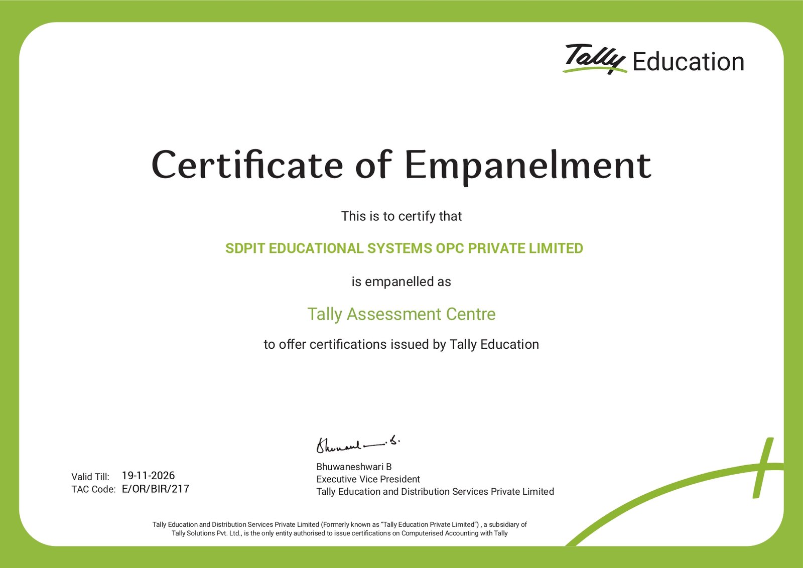 Tally Education Authorized Training Partner |